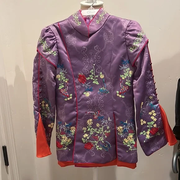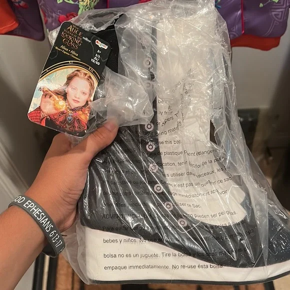 Disney and Chasing Fireflies Alice Through The Looking Glass Full Costume! This a beautifully detailed and perfect costume for this Halloween. It is the full costume which includes the shoes (size 2/3), the top (size 10), the pants (size 10), the ornate collar piece, and also it’s own dress bag! It was never worn and in perfect condition!