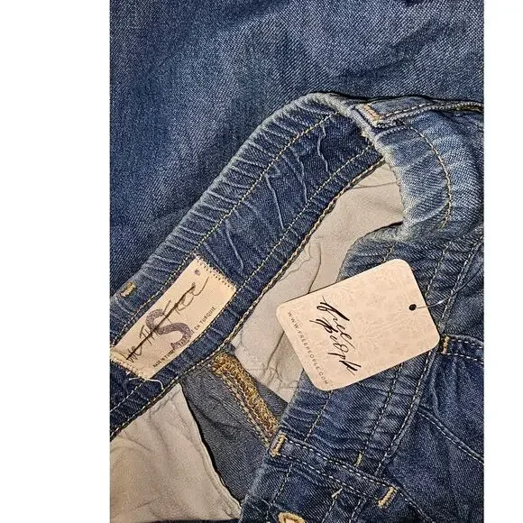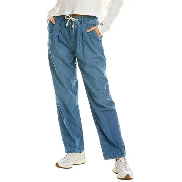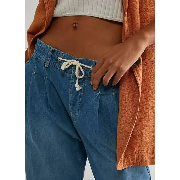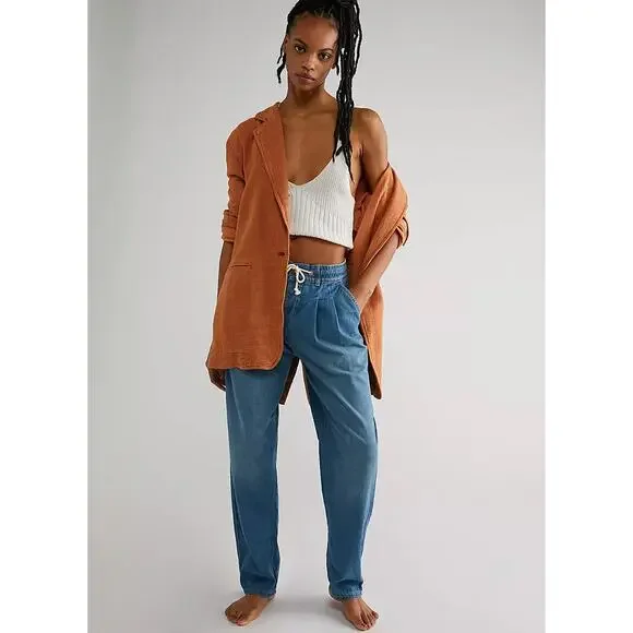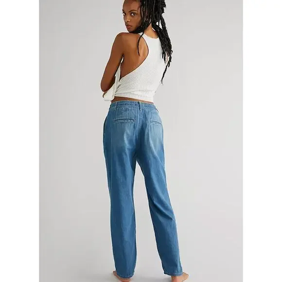 New Free People WTF Luna Pull-on DENIM JEANSRetail $128 SMALL4/6Stardust BlueThe Free People Luna Denim Pull On. The perfect effortless pair, these essential jeans from We The Free collection are featured in a relaxed, straight-leg silhouette with pleating at the top and smocked waistband for ease.Corded drawstringButton flyFour pocket design100% CottonMachine wash, tumble dryWaist: 33 inches inchesInseam: 28.5inchesLeg opening: 14 inchesRise: 12.25 inchesHips 46.5 inchesNew with tags. Label marked to prevent retail store return. TT-ANTHJ