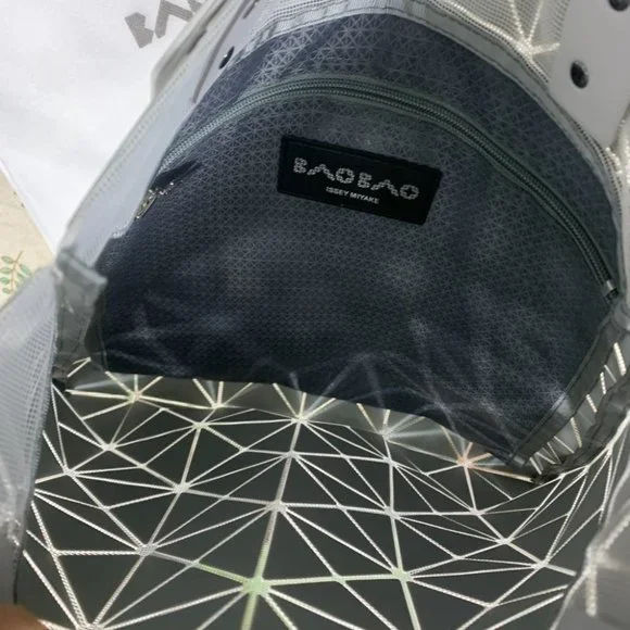 "Bao Bao Issey Miyake Lucent Tote BagThis large carryall bag from the Bao Bao collection features a 3D pris m design. Vinyl geometric shapes bonded on mesh. Adjustable straps. Interior zip pocket.Approx Height: 13.5"" (34 cm) Length: 13.5"" (34 cm).Brand new never usedOpen to offer!Missing original packagingNote: The real color of the item may be slightly different from the pictures shown on website caused by many factors such as brightness of your monitor and light brightness. Thank you "